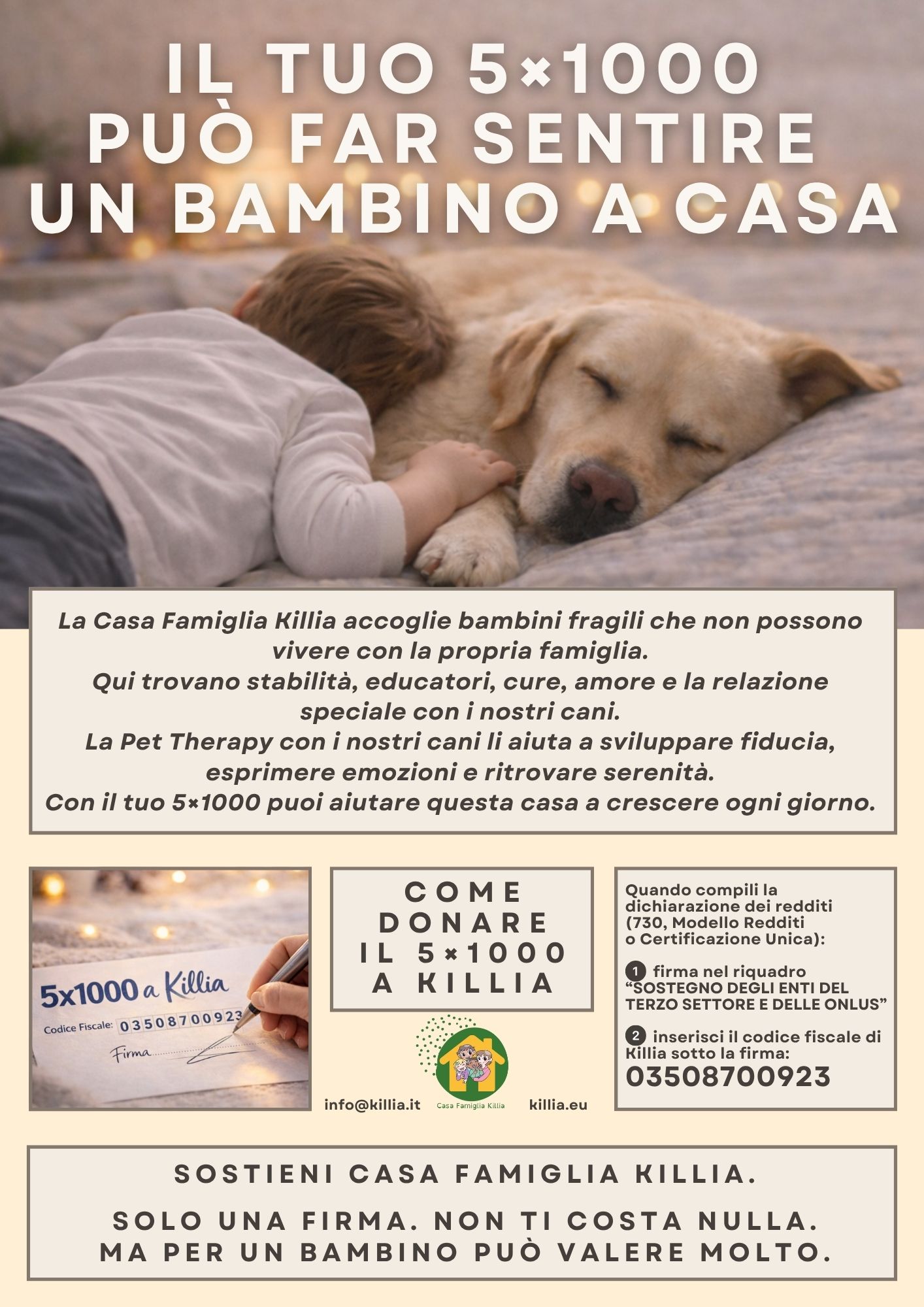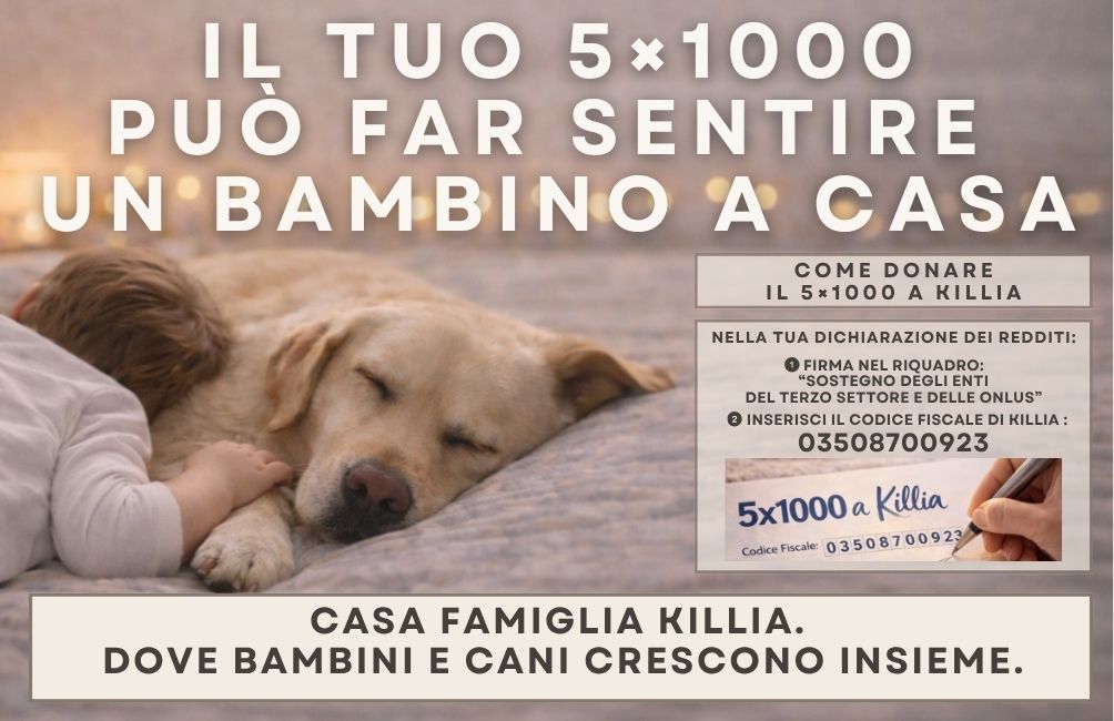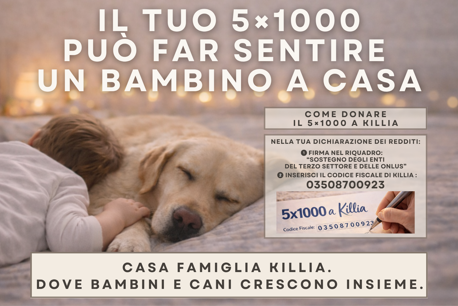 Per Killia, significa poter continuare ogni giorno a prenderci cura di bambini, persone fragili e famiglie, costruendo relazioni, inclusione e benessere… anche grazie ai nostri animali co-terapeuti.